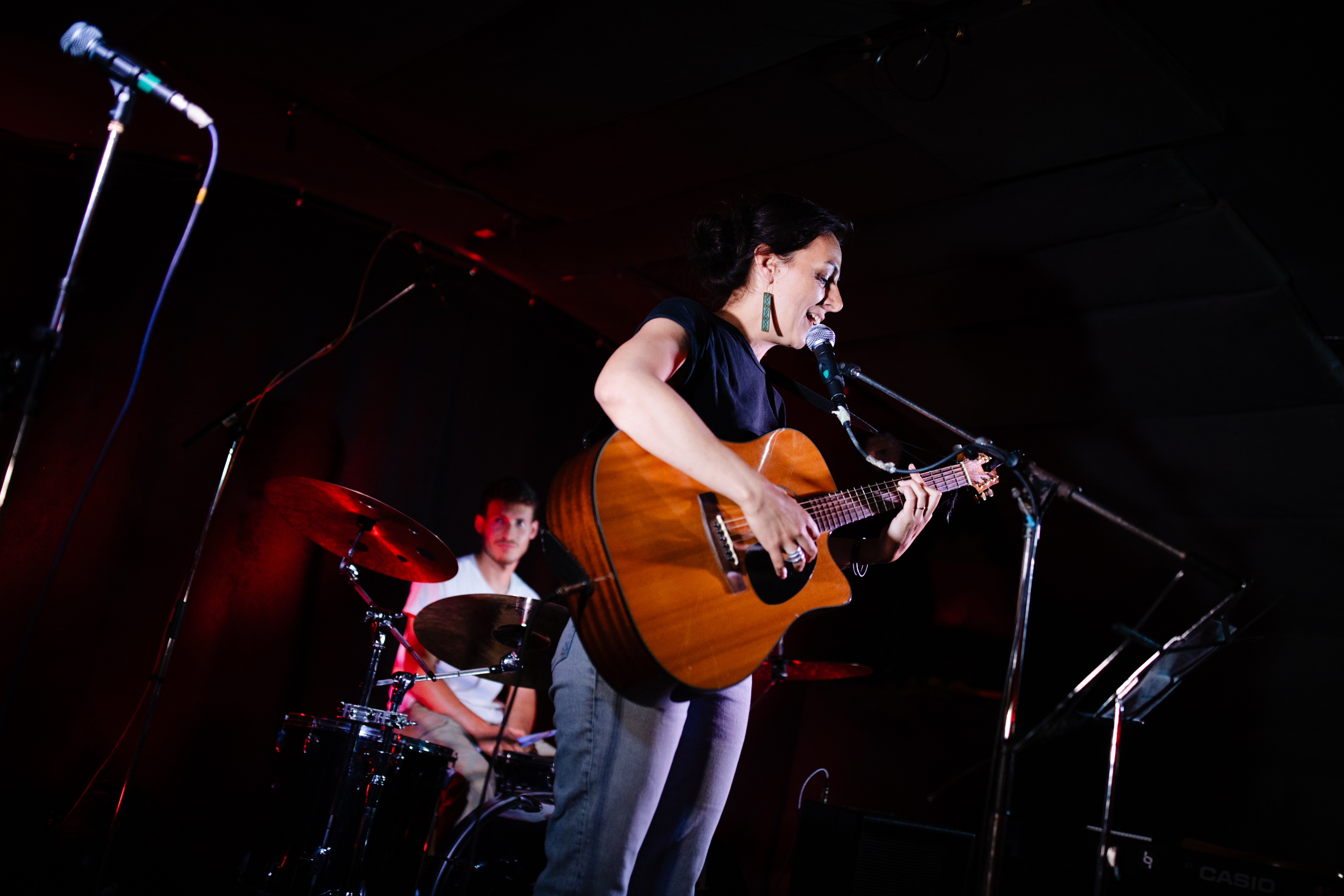 Arrimée à sa guitare et accompagnée d'Hugo au cajón, Klaire est une chanteuse française, fraîchement débarquée à Tbilissi.
